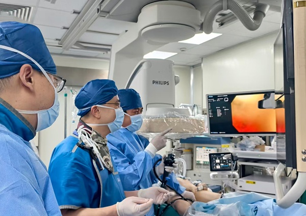摆在医生面前的是两难选择:开腹手术?老人76岁,癌症晚期,心肺功能本就差,麻醉和手术创伤很可能过不了关。即使勉强解除梗阻,身体也难以承受术后恢复。不手术?肠道堵死,活活“憋”着只会更痛苦。姜昊声从事肿瘤微创介入治疗20多年,已完成8000多例手术,他决定尝试非手术方案——先通过肠镜为老人植入金属支架,像撑开一把小伞一样,把被肿瘤压扁的肠腔撑开,恢复部分通道。